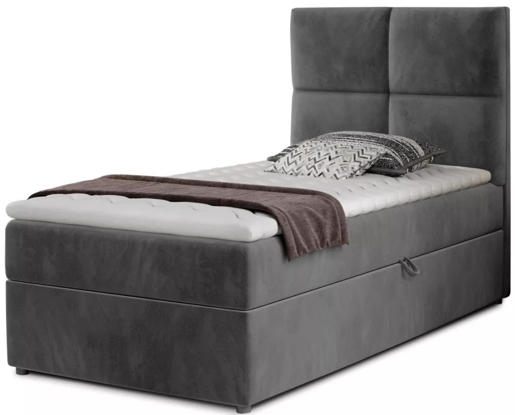 Rivia egy klasszikus stílusú egyszemélyes és nagyon ízléses ágy, amely ideális bútordarab lesz bármilyen hálószobában - akár a gyerekszobában, akár a vendégek számára kialakított szobában - a Rivia mindig sláger. Az ágy 90 x 209 cm-es felülete, valamint a boneollal és T25 habszivaccsal való kitöltése garantálja az egészséges alvást, mivel ez a fajta matrac megtámasztja a testet a megfelelő helyzetben pihenés közben. Annak ellenére, hogy az Arco ágy minimalistának és kompaktnak tűnik, egy tágas, szövet fogantyús ágyneműtartót helyeztek el benne. További megkülönböztető jellemzők közé tartozik a magas, 53 centiméteres ülés és a 3 centiméteres lábak. A Boxspring Rivia ideális választás, ha tökéletes egyágyat keres hálószobájába. A Rivia a kisebb méret és a maximális kényelem szinonimája.