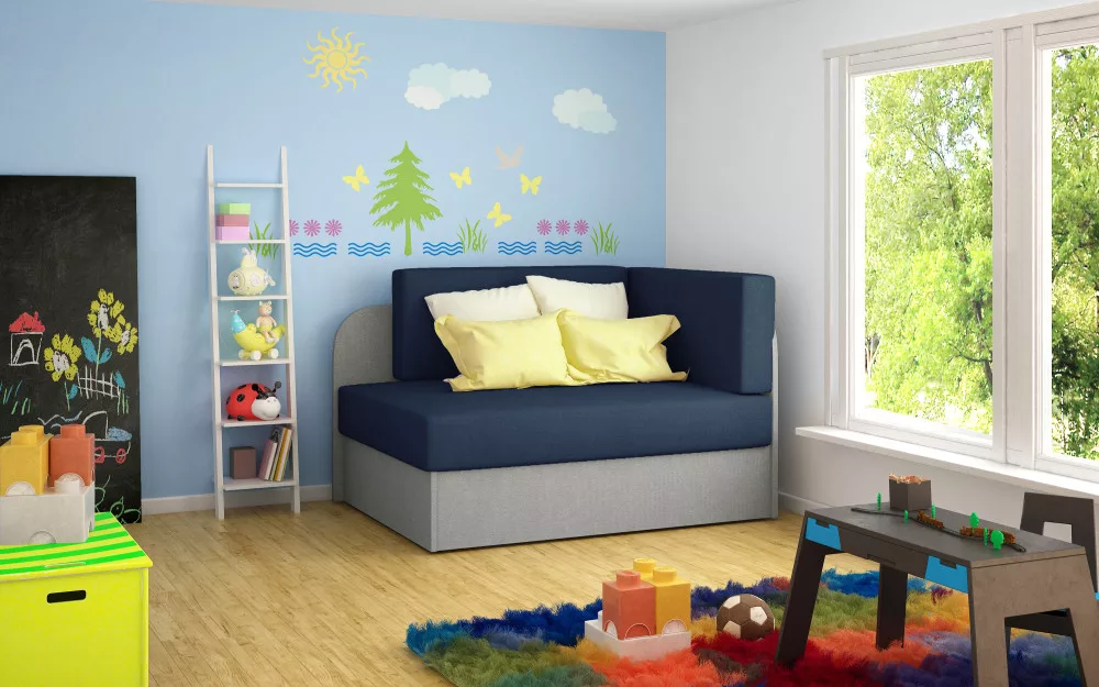 egy nagyon kényelmes, funkcionális és érdekes kanapé 75 x 73 x 60 cm-es méretekkel, amely tökéletes lesz a gyerekszoba fő felszereléseként. A kanapé két árnyalatot ötvöző színvilágban van megtartva - a háttámla és az ülőfelület egységes színű, míg a bútor alja és az oldalak kissé eltérő tónusúak. Az ilyen anyag- és színlehetőségek nagyon hangulatossá és egyedivé teszik a gyerekszobát. A kanapé mind a nappali, mind az éjszakai pihenéshez nyújt teret. A bútor összecsukható funkciója lehetővé teszi, hogy a kanapét az aktuális igényeihez igazítsa.