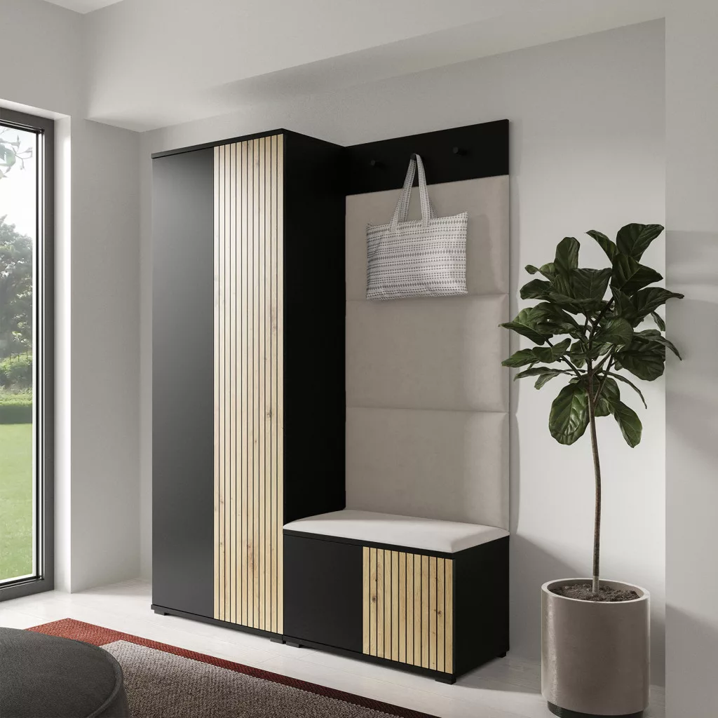 Ross 1 kárpitozott előszobafal, fekete/artisan - krém 01