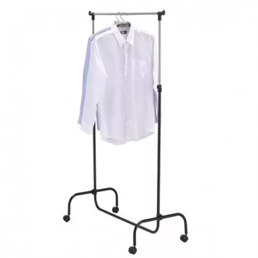 Praktikus fém ruhaállvány. Állítható magasságú. A kerekeknek köszönhetően könnyen mozgatható.