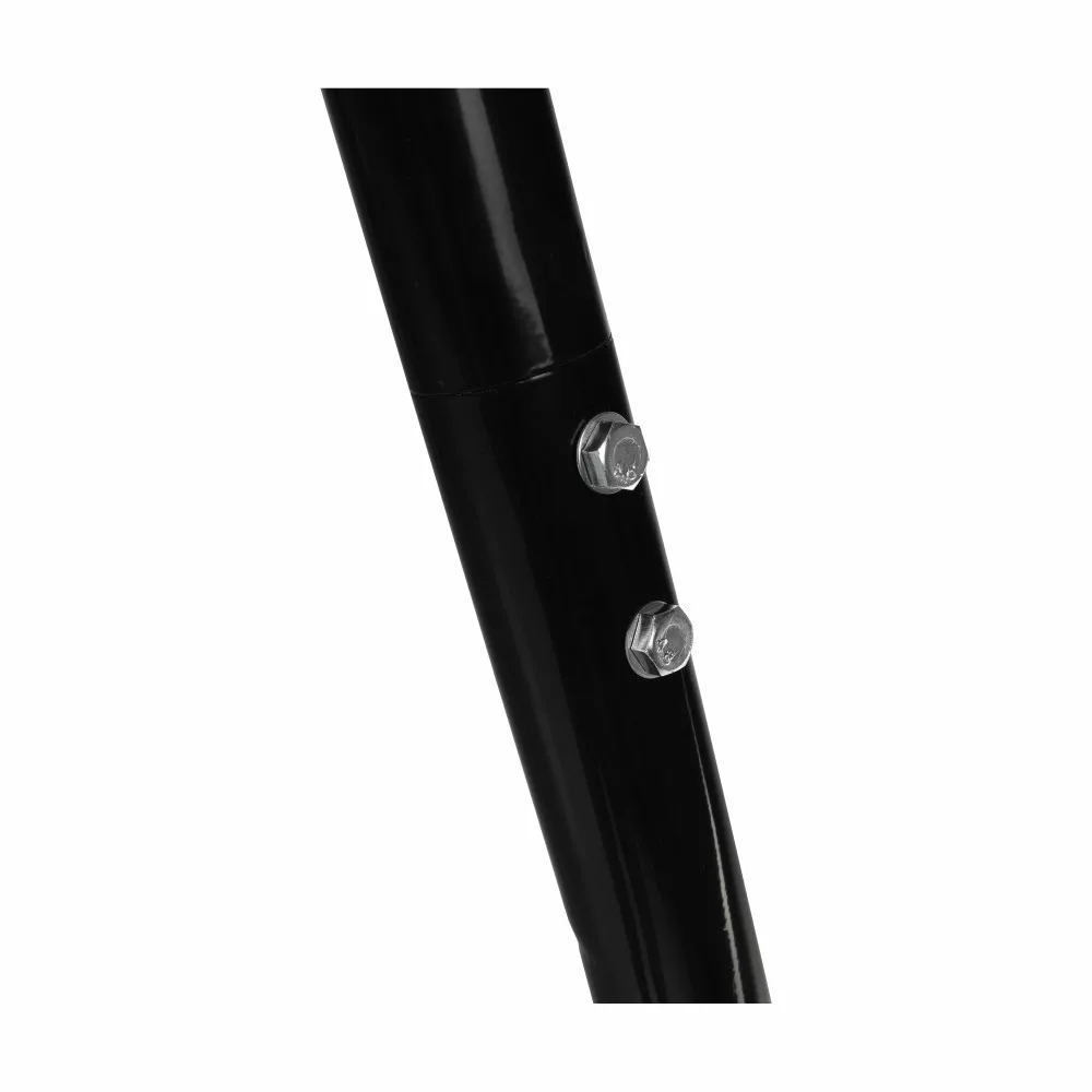 Álvány függő hintaszékre HAKI Anyag: acél Szín: fekete Méretek (SzxH): 280x280 cm Rúd átmérője: 42 mm Rúd vastagsága: 1,5 mm Maximális teherbírás: 200 kg Egy függő székre Sík és szilárd felületre Bontásban szállítva.