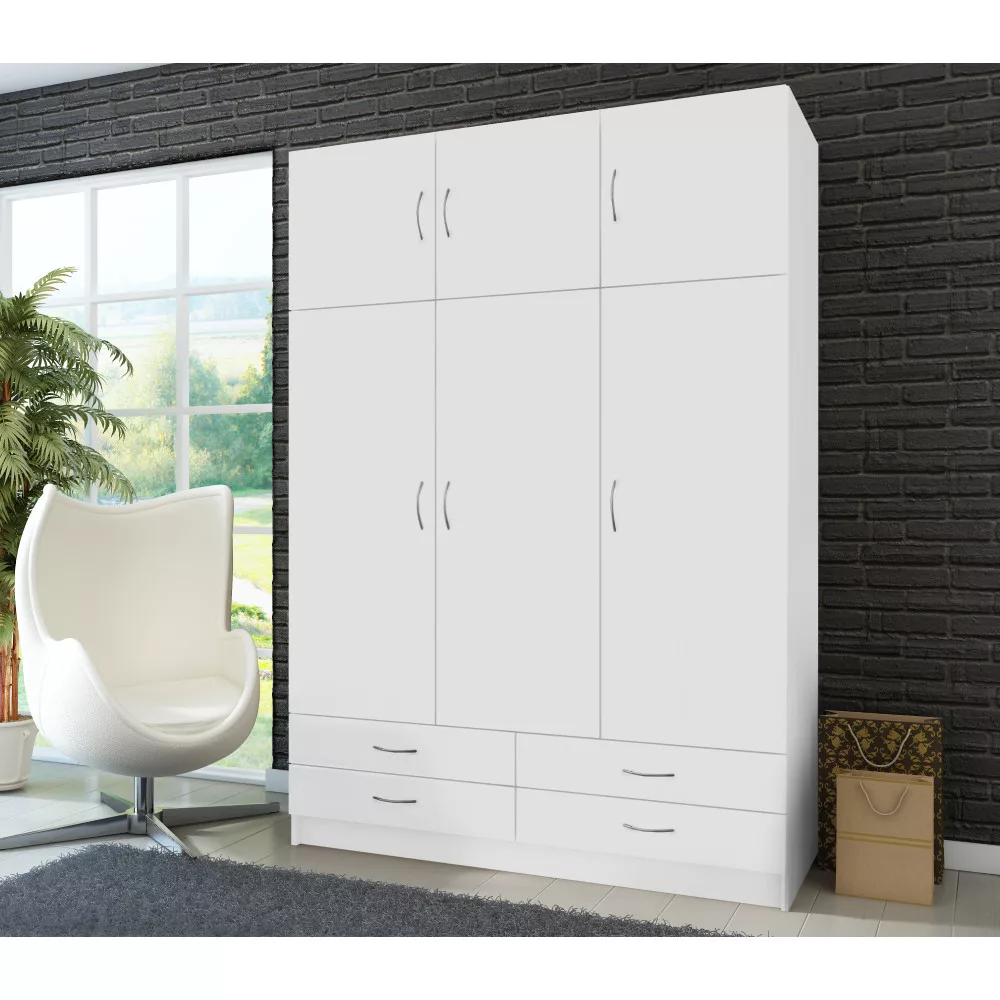 Ruhásszekrény, háromajtós, fehér, GERI NEW