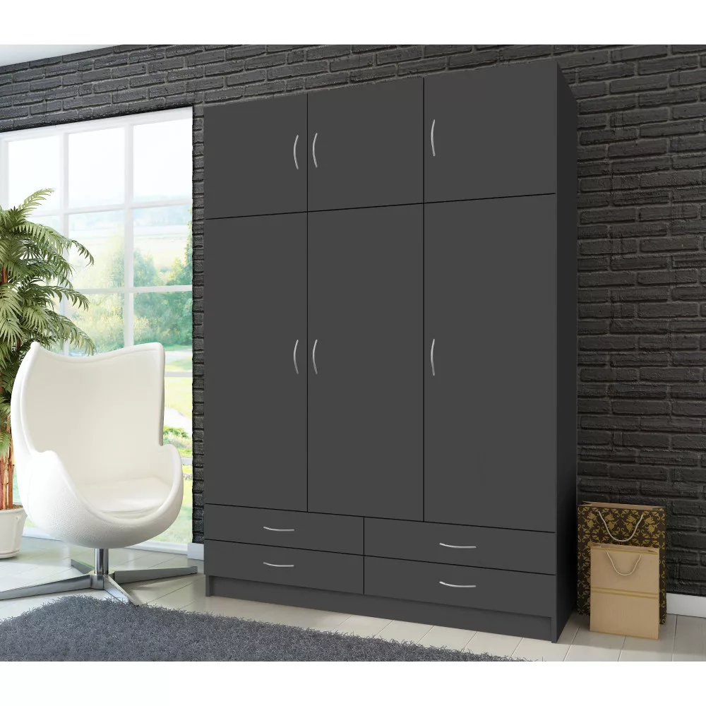 Ruhásszekrény, háromajtós, grafit, GERI NEW
