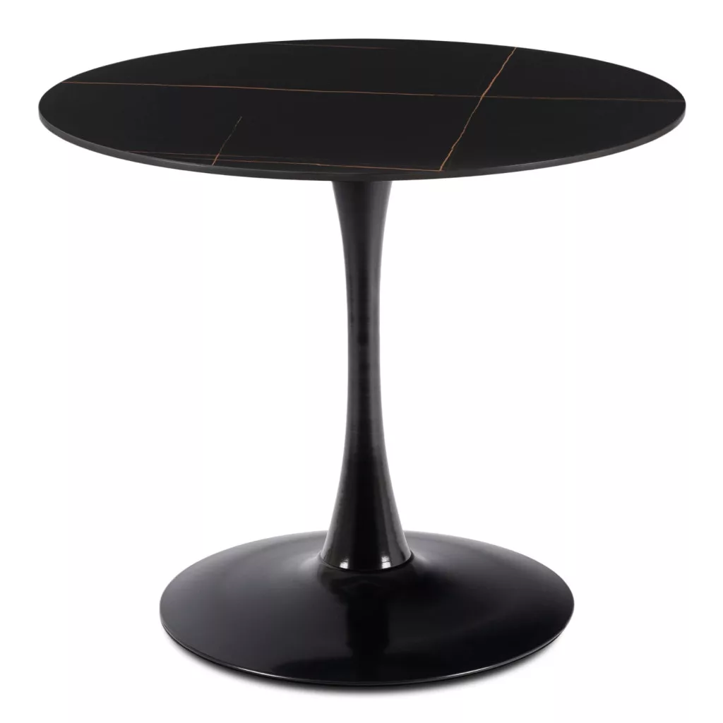 Sander asztal - Teremtsen korlátlan teret! Olyan asztalt keres, amely nem korlátozza a lábait néhány rögzített pozícióhoz, hanem szabadságot és korlátlan teret kínál az asztallap alatt? A Sander asztal megfelel az elvárásainak! A központi, hengeres asztalláb az alsó, kerek talp felé nyúlik, stabilitást biztosítva anélkül, hogy zavarná a lábak kényelmét, vagy korlátozná a székek elrendezését körülötte. Fedezze fel a Sander asztal különleges tulajdonságait! Asztallap: Fekete kerámia, finoman díszített, élénk mintázatú keresztirányú vonalakkal. Láb: Fekete porszórt acél, elegáns és stabil alapot biztosít. Stílus: Modern loft stílus, amely kiegészíti az avantgárd belső tereket.