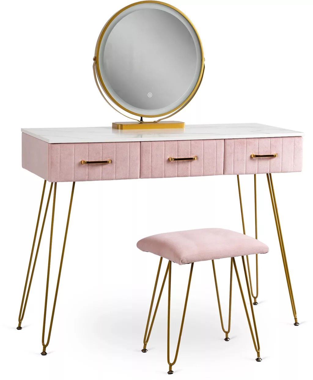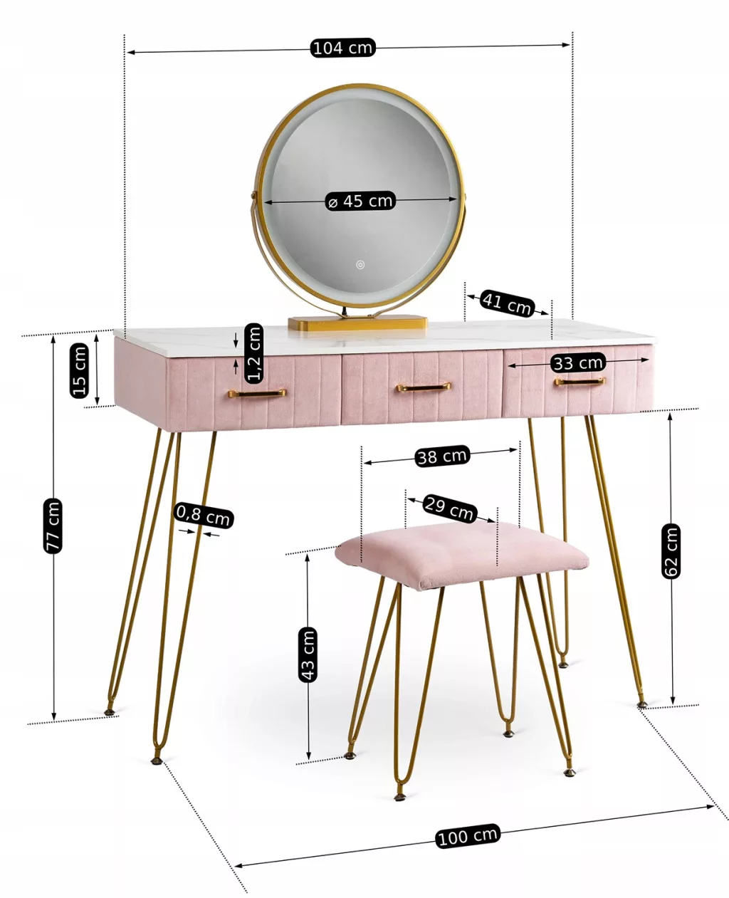SANDY Fésülködőasztal Rózsaszín/Arany