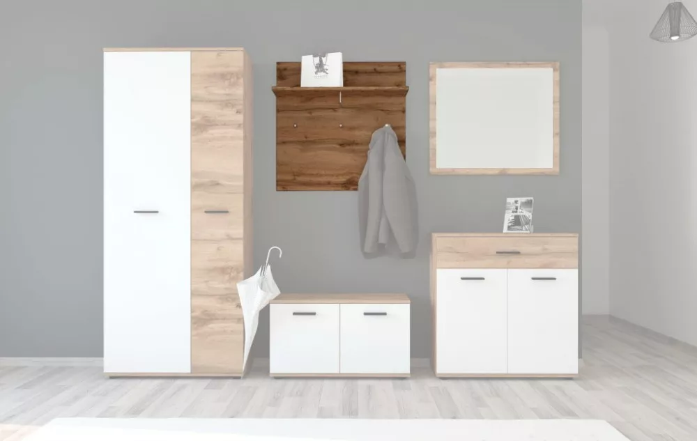 A SANTO termékcsalád stílusos fogasa, mely a wotan tölgy színnek, és a bútor praktikus kialakításának köszönhetően, bármelyik előszobában megállja a helyét.