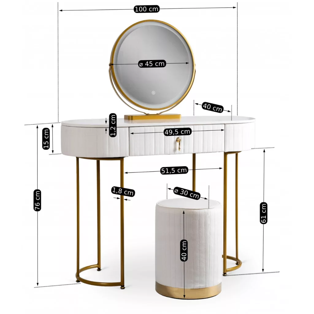SARAH Fésülködőasztal Fehér/Arany