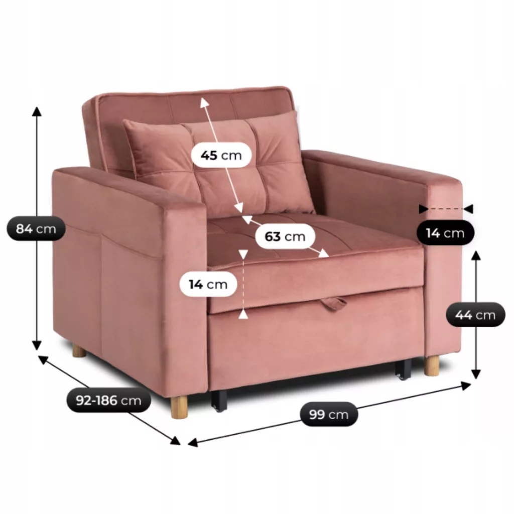 SOLOR Rózsaszín Bársony Dönthető Fotel