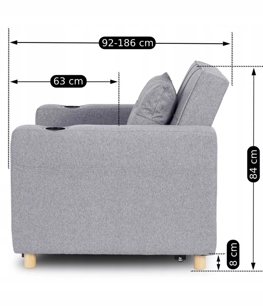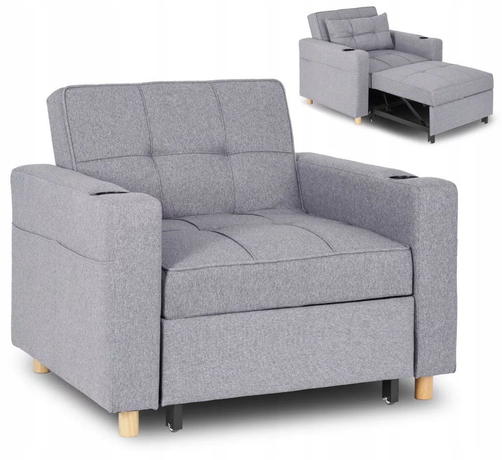 SOLOR Szürke Dönthető Fotel. Egy egyszemélyes ágy és egy kényelmes pihenőfotel - miért ne kombinálnád őket egyetlen bútordarabban? Bemutatjuk a SOLOR Szürke Dönthető Fotelt. Ez a rendkívül funkcionális bútordarab tökéletes kiegészítője lesz, különösen kisebb lakásokba. Praktikus dönthető funkció. A dönthető funkciónak köszönhetően a fotelt az aktuális igényeidhez igazíthatod, három különböző pozíció közül választhatsz: kinyújtott lábtartóval - tökéletes a pihenéshez kedvenc könyved olvasása vagy tévénézés közben. kinyújtott lábtartóval és