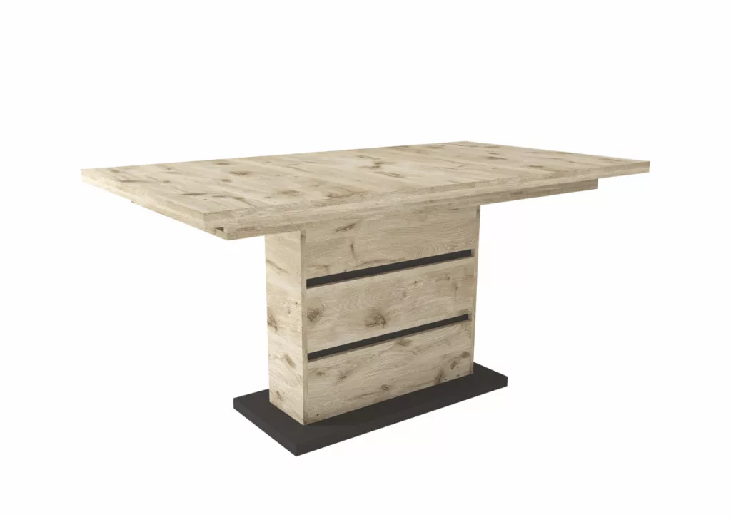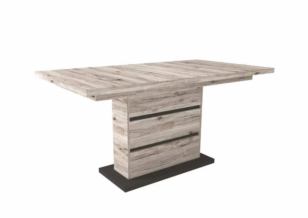A Sydney asztal 160 cm-es méretben, 5 színben kapható: sonoma, viking tölgy, artisan tölgy, san remo és sötét justus tölgy. A talp matt fekete, matt fekete lábrész kiegészül az asztallapszínnel. Bővíthető  40 cm-es vendéglappal.