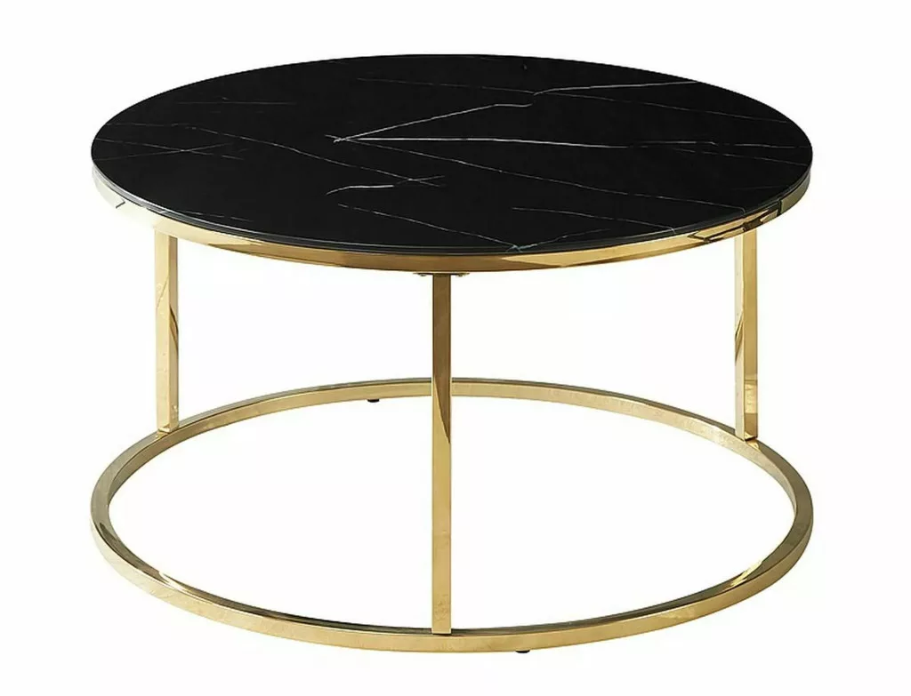 Dohányzóasztal, teteje: edzett üveg, keret: rozsdamentes acél, szín: fekete, márványhatású / arany.
