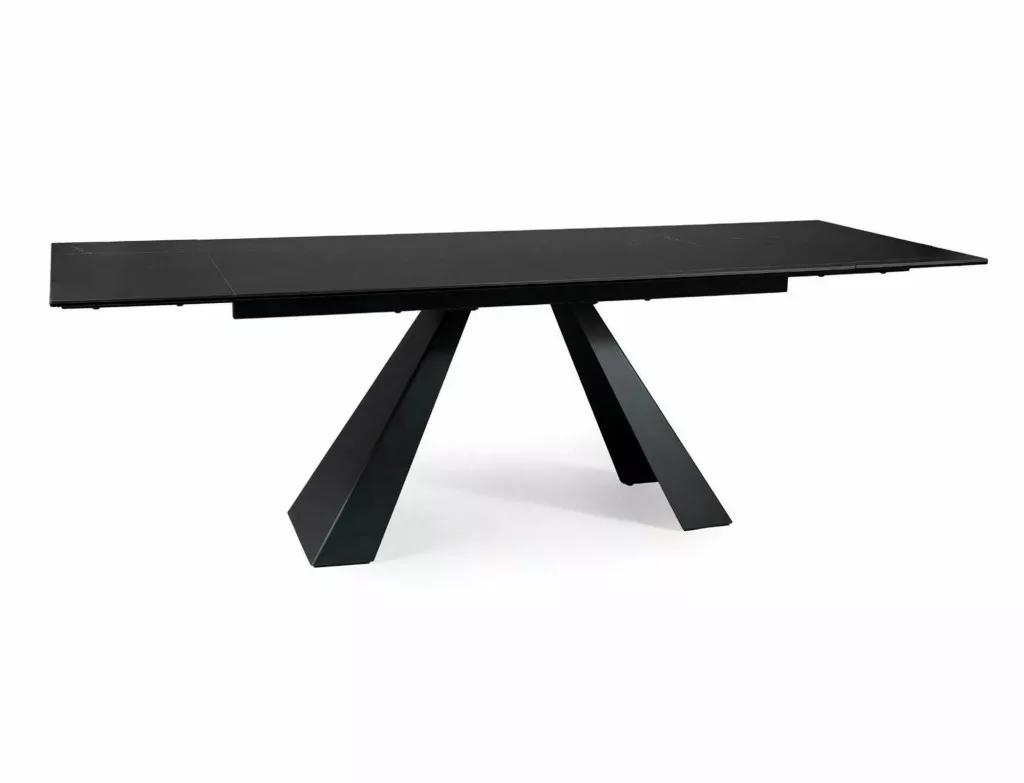 Meghosszabbítható asztal, teteje: edzett üveg + olasz SAHARA NOIR kerámia, váz: fém, szín: fekete / matt fekete.