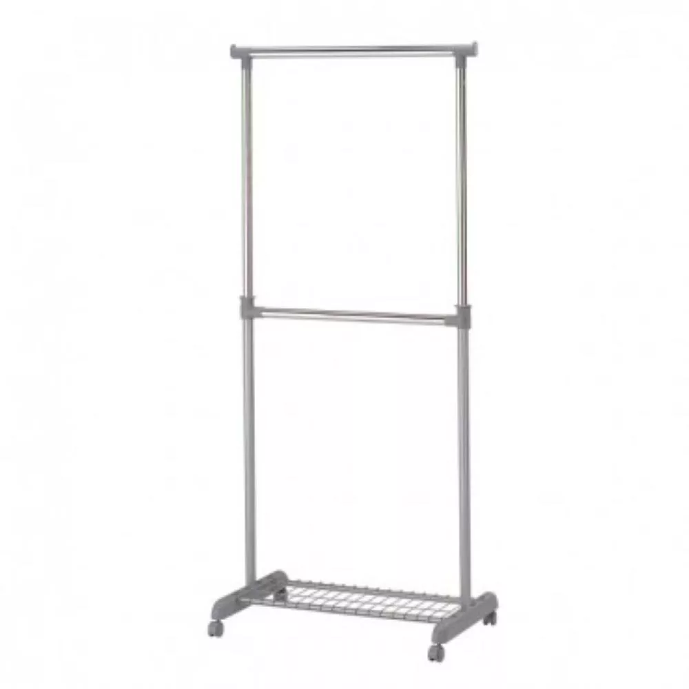 Praktikus fém állvány, amely magasságban állítható. Kerekeken gurul, ami megkönnyíti a helyiségben való mozgást. Az alatta polc található, amely további helyet biztosít.