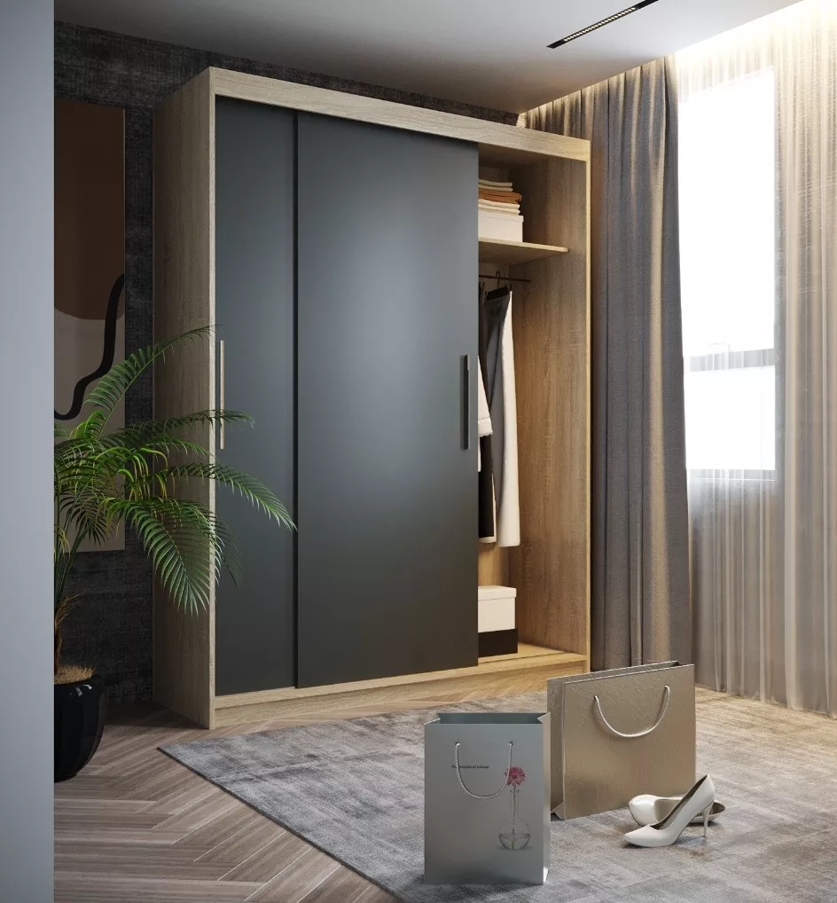 Sara 160 cm tolóajtós gardróbszekrény sonoma/antracit