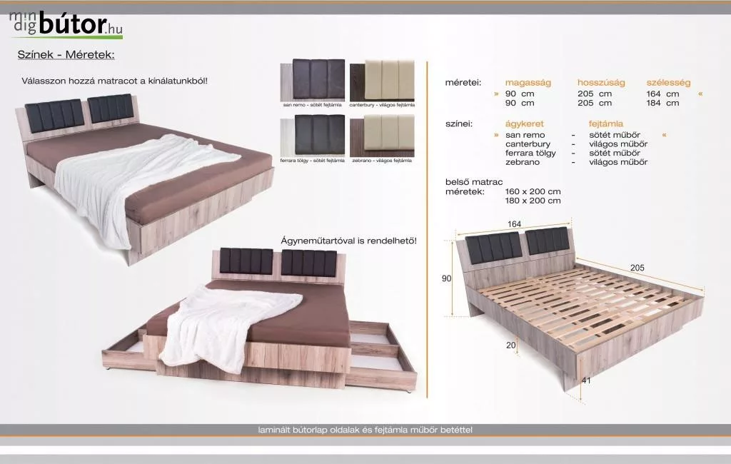 Laminált bútorlap oldalak és fejtámla műbőr betéttel