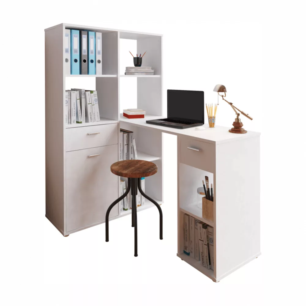Sarok PC asztal könyvespolccal, fehér, MINESON