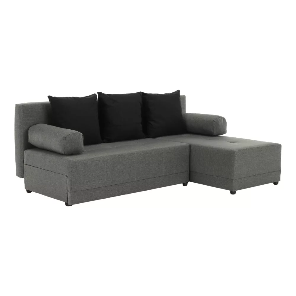 Sarokülőgarnitúra, J allású,  ágyfunkcióval, szövet szürke/ párnák fekete, MEXX