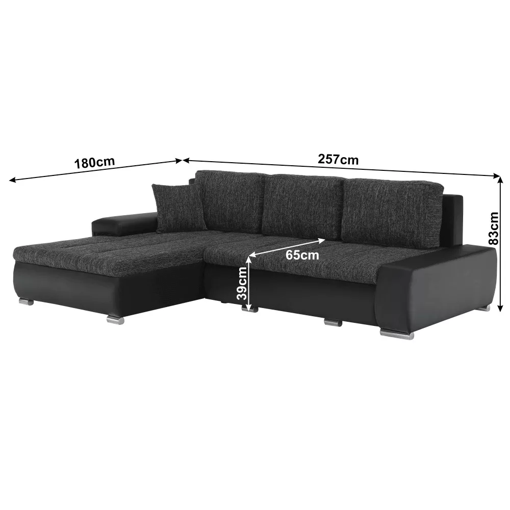 Sarokülőgarnitúra, fekete/fekete melír, TRAMP
