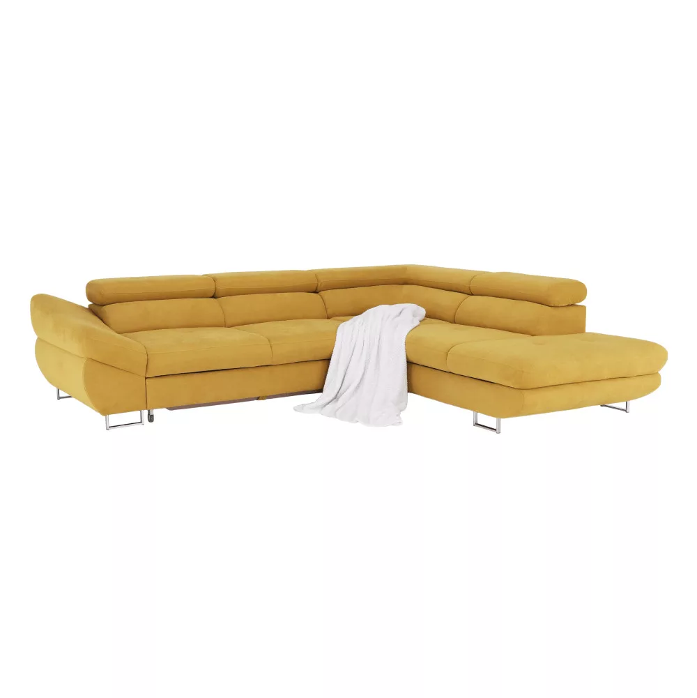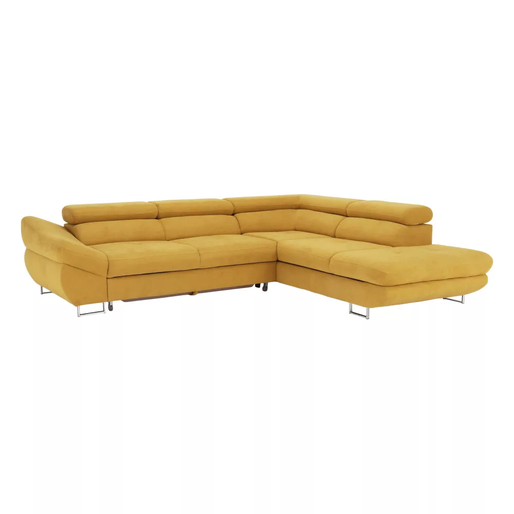 Kinyitható ülőgarnitúra FABIA (jobb sarok) rakodótérrel mustár színű szövetben.