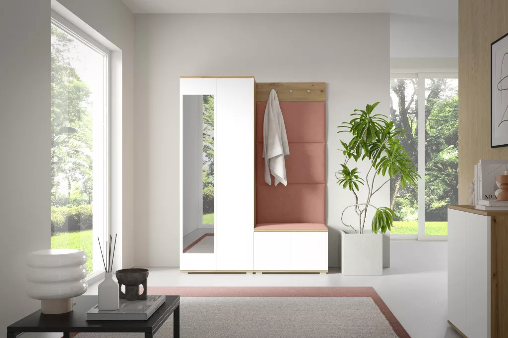 Sevilla 1 kárpitozott előszobafal, artisan/fehér - rózsaszín 23 - egyedi