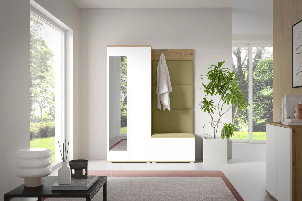 Sevilla 1 kárpitozott előszobafal, artisan/fehér - zöld 27 - egyedi