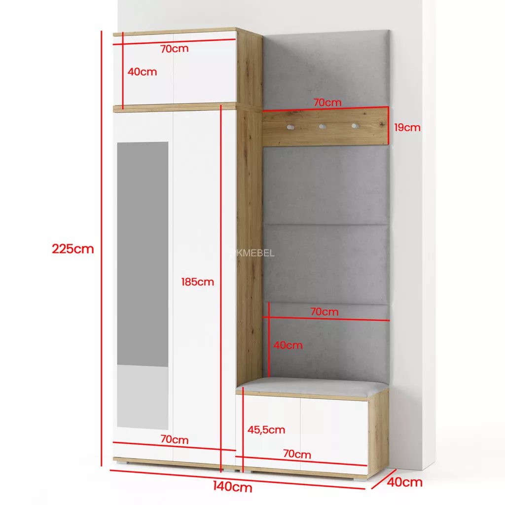 A kárpitozott paneleket közvetlenül a falra, a szekrényre és a cipőtartóra kell rögzíteni ragasztó segítségével. A ragasztót a csomag nem tartalmazza.