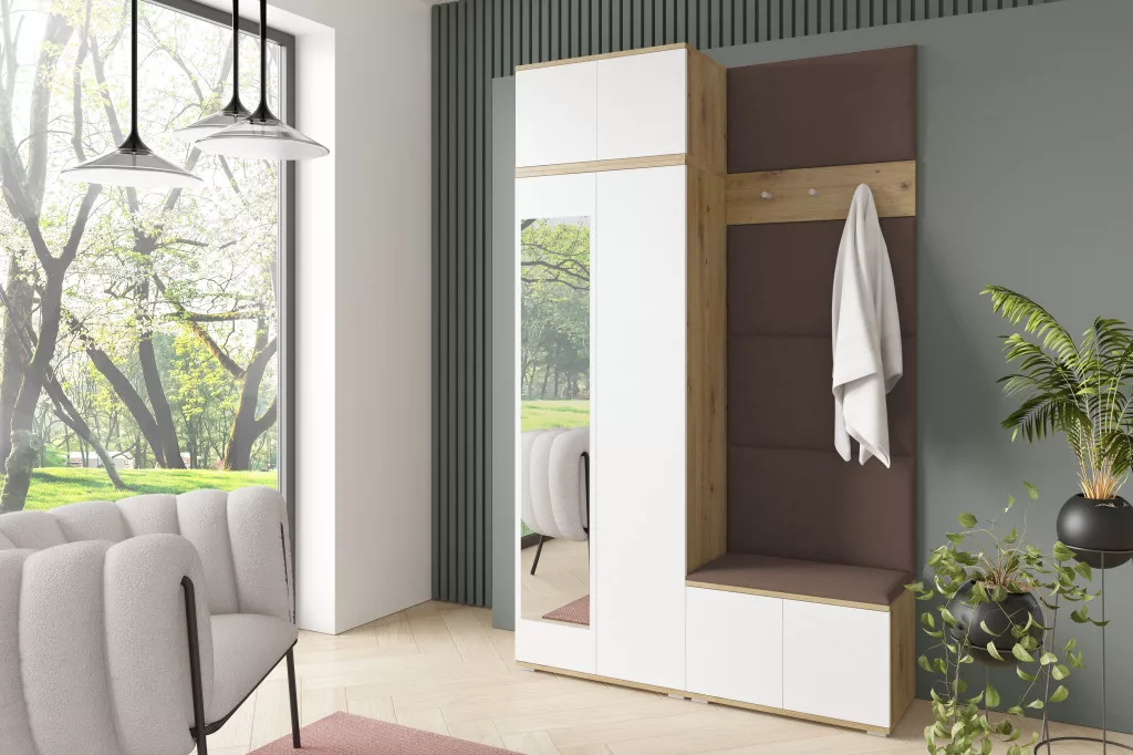 Sevilla 2 kárpitozott előszobafal, artisan/fehér - sötét barna 08