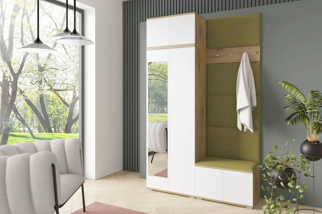 Sevilla 2 kárpitozott előszobafal, artisan/fehér - zöld 27- egyedi