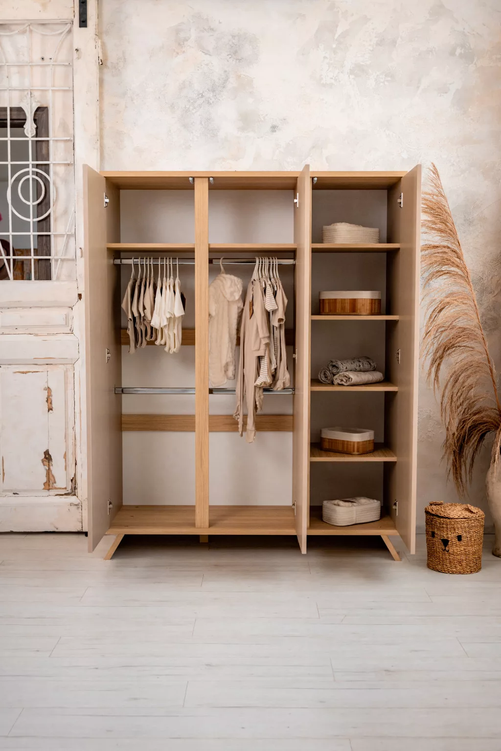 Igaz, hogy a nagyobb szekrény nagyobb helyet is foglal, cserébe rengeteg tárolási lehetőséget kínál. Az ajtók modern push-open technológiával működnek: fogantyú helyett egyetlen nyomásra nyílnak a beépített kilökő-szerkezetnek köszönhetően. Mindez letisztult, stílusos megjelenést, kényelmes használatot és hosszú élettartamot biztosít. Méreteinél fogva újszülött kortól egészen fiatal felnőtt koráig elkíséri gyermeked.
