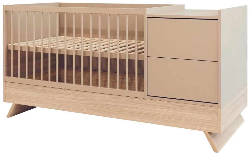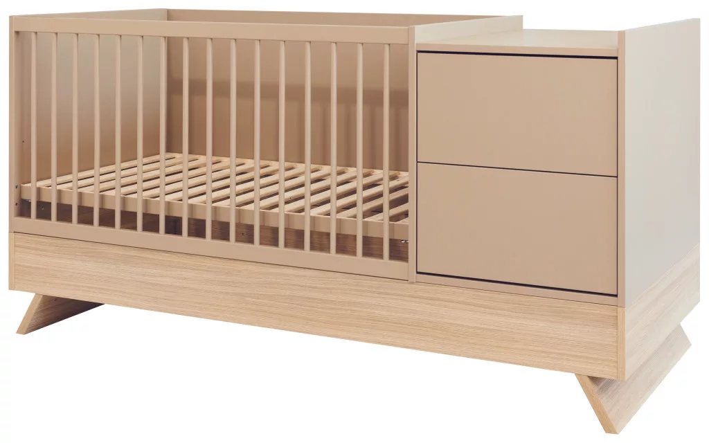A Sienna Cappuccino bútorcsalád új tagja nem csupán szemet gyönyörködtető megjelenésével hódít, hanem kifinomult, átgondolt funkcióival is meggyőz. A dylan tölgy lábakon álló kombi babaágy elegáns kasmír bútorlappal egészül ki, amely tökéletes harmóniát teremt a természetes és modern stílus között.