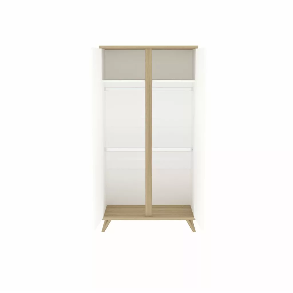 A Sienna White 2 osztású szekrény a babaszoba nélkülözhetetlen tároló bútoraként minden igényt kielégít. Praktikus belső akasztós kialakításának köszönhetően átláthatóan és könnyen kezelhetően tudod tárolni kisbabád ruháit. Továbbá a szekrényen belüli felső polc kialakítás a szekrény méreteinek kihasználását maximalizálja. Igény szerint további 3 db polccal is kiegészíthető.
