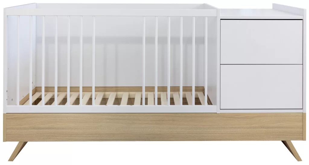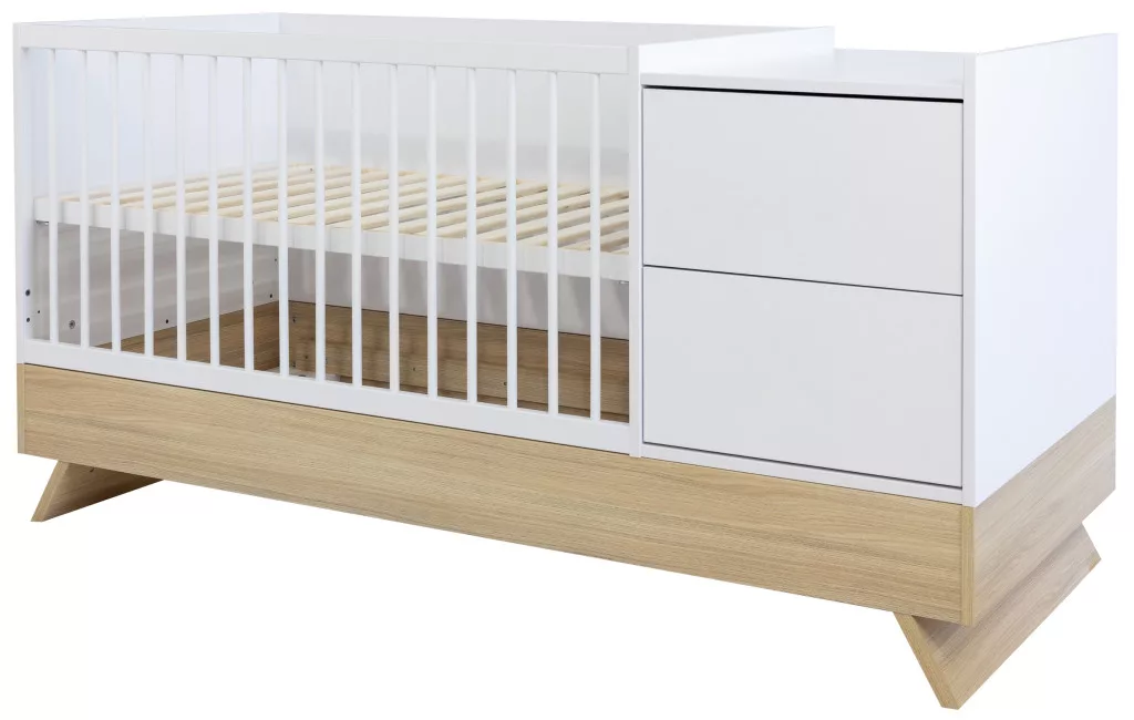 A Sienna White bútorcsalád új tagja nem csupán szemet gyönyörködtető megjelenésével hódít, hanem kifinomult, átgondolt funkcióival is meggyőz. A dylan tölgy lábakon álló kombi babaágy elegáns jégfehér bútorlappal egészül ki, amely tökéletes harmóniát teremt a természetes és modern stílus között.