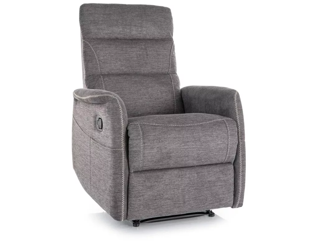 Dönthető fotel masszázs- és fűtésfunkcióval, Brego 18 szövetkárpittal, váz: fém, szín: sötétszürke / fekete. Praktikus zseb a jobb oldalon, vezetékes távirányító a masszázsfunkcióhoz.