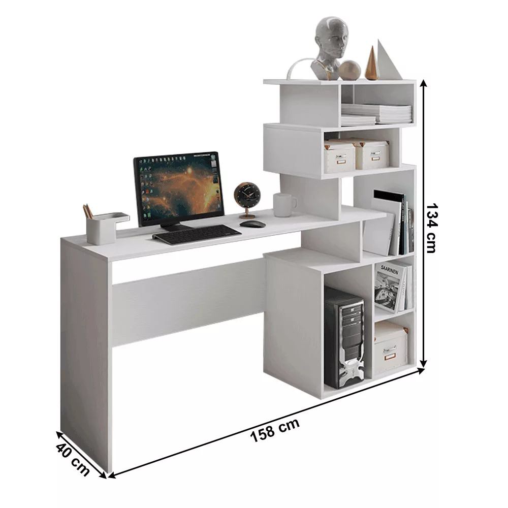 Számítógépasztal, fehér, laminált DTD, MAXIM