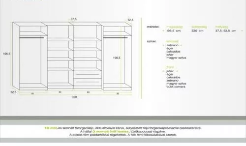 Választható színek:-Korpusz: jusztusz tölgy, sötét katthult