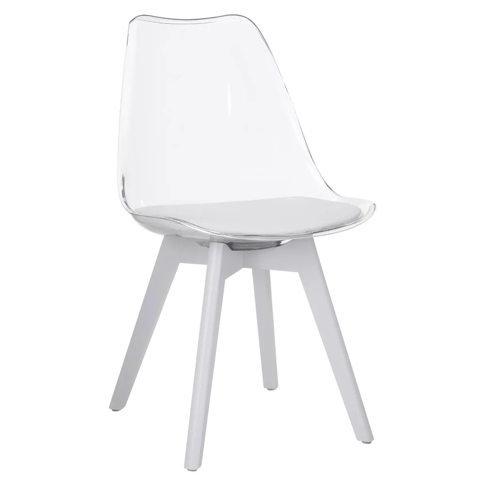 Szék, átlátszó fehér, akril/ekobőr/fehér, BALI 3 NEW