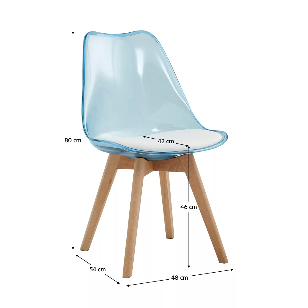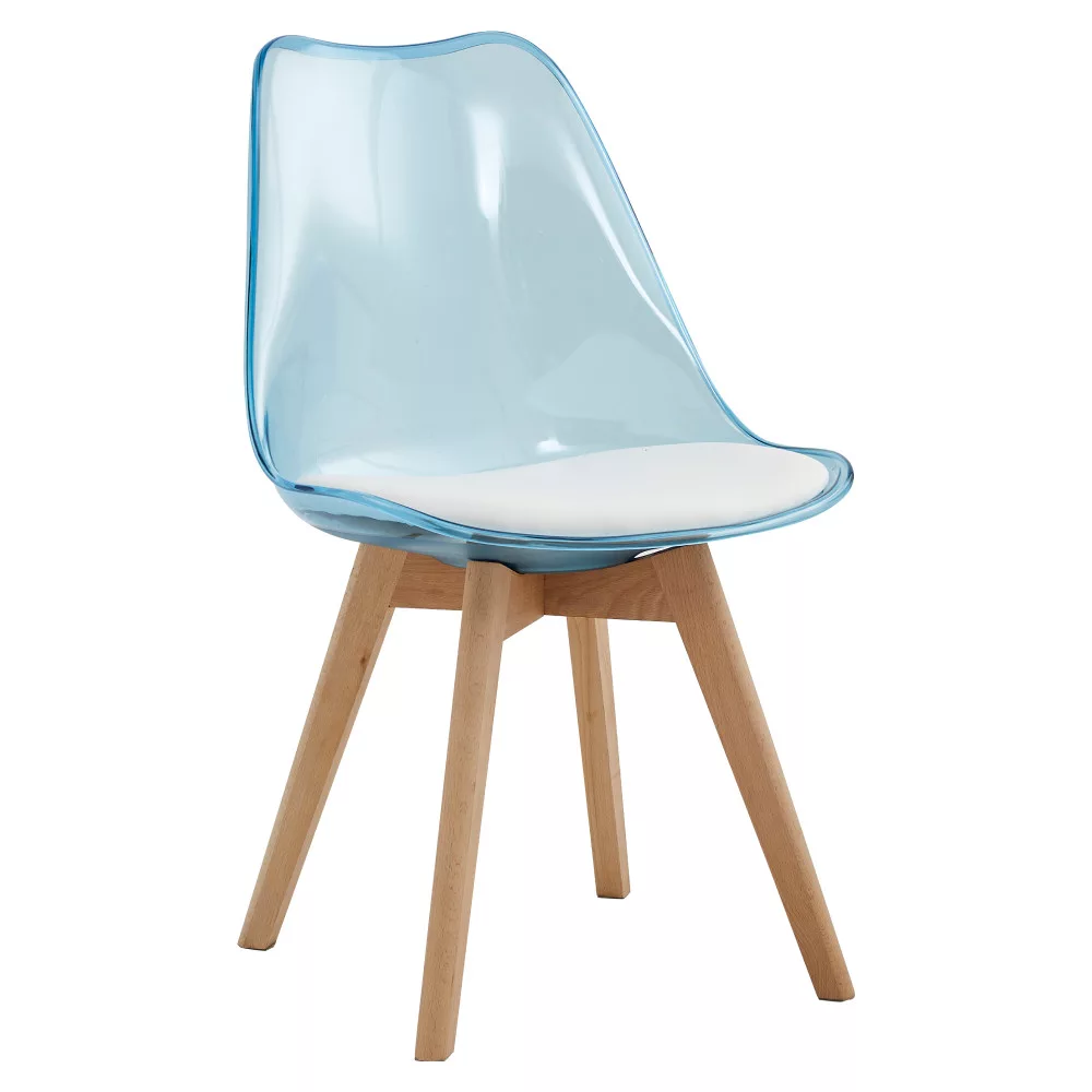 Szék, átlátszó kék, akril/ekobőr/bükk, BALI 2 NEW