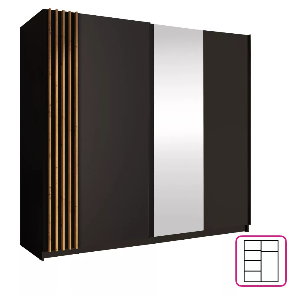 Szekrény, 2D-200, fekete/artisan tölgy, BAJADERO TYP 2