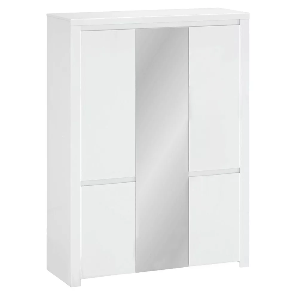 Szekrény 5D tükörrel, fehér fényes, LINDY