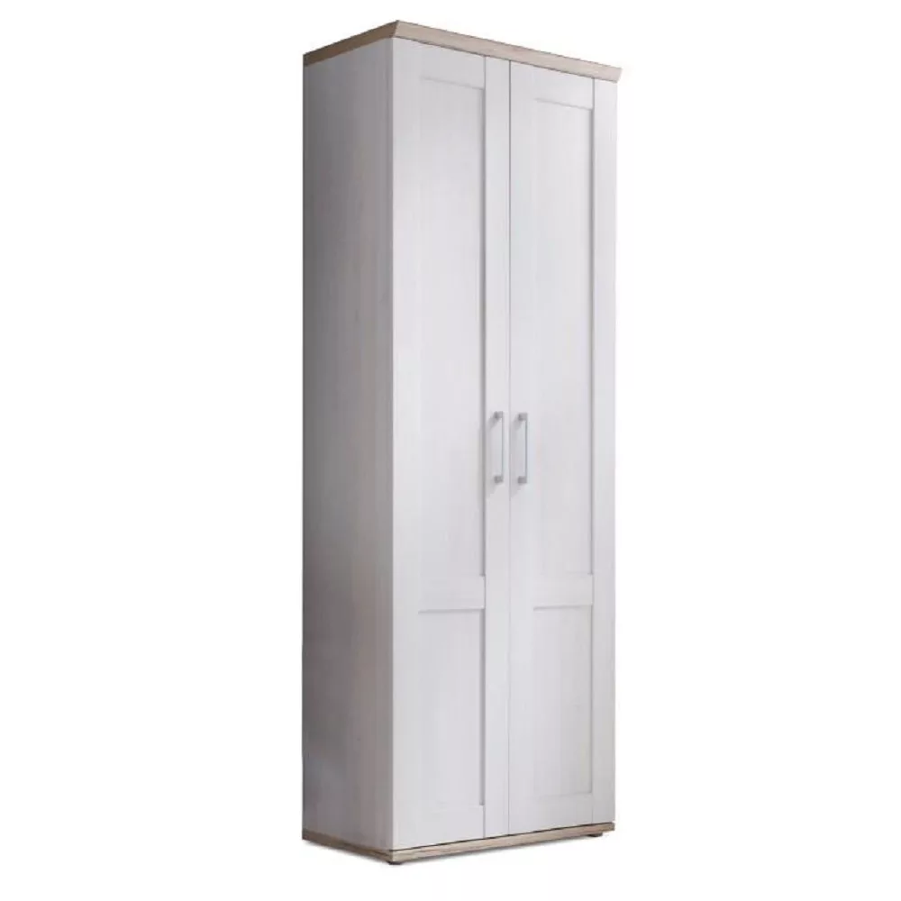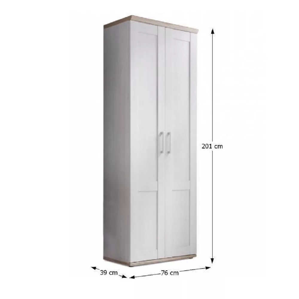Szekrény a PROVENSAL előszobai elemes bútorkészletből. Fehér korpusz, felső és alsó lemez tölgy San Remo, Fóliázott DTD Méretek (SzxMaxMé): 76x201x39 cm. A szekrény polcos 5 polc Bontásban szállítva