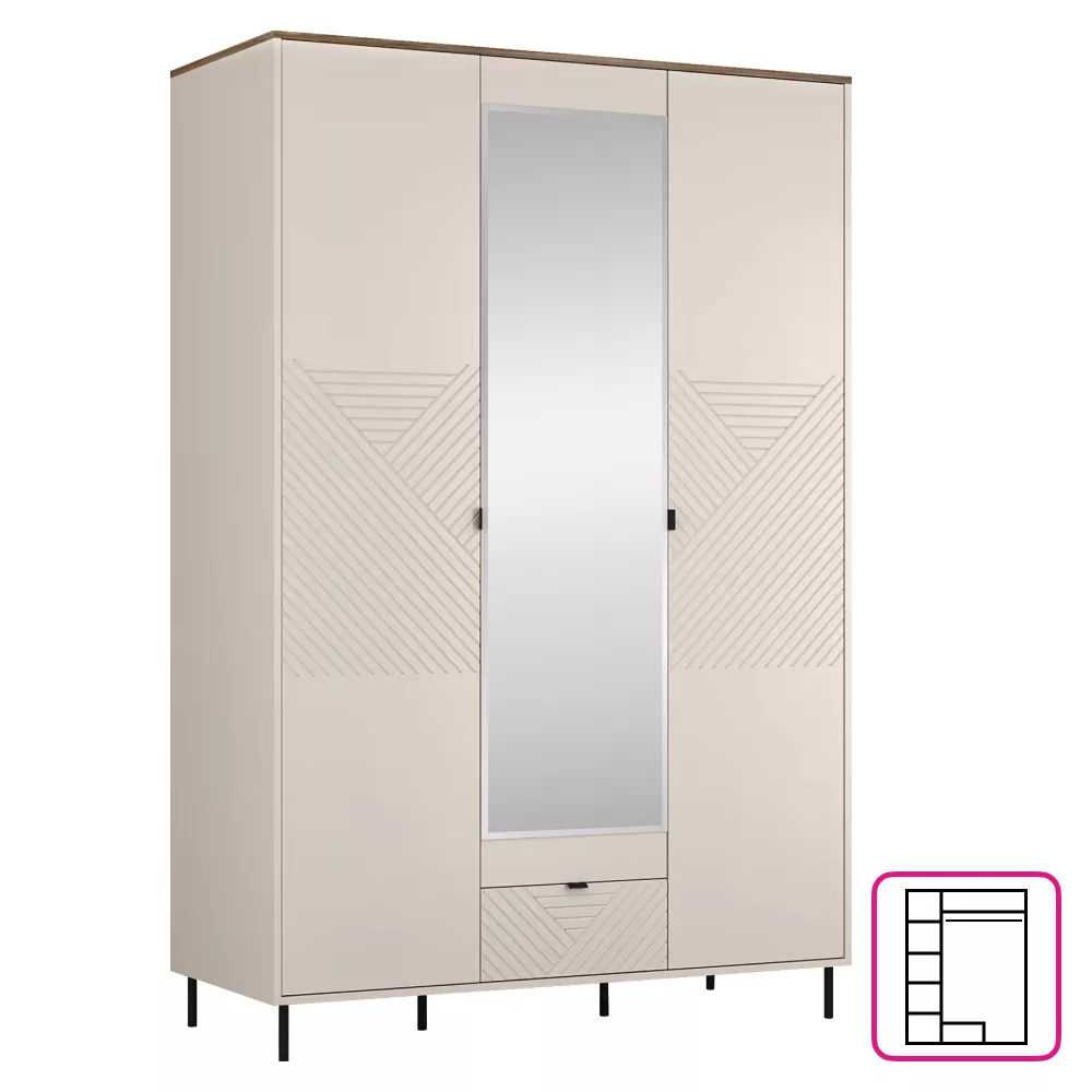 Szekrény, kasmír/castello tölgy, EYCO 3D1S