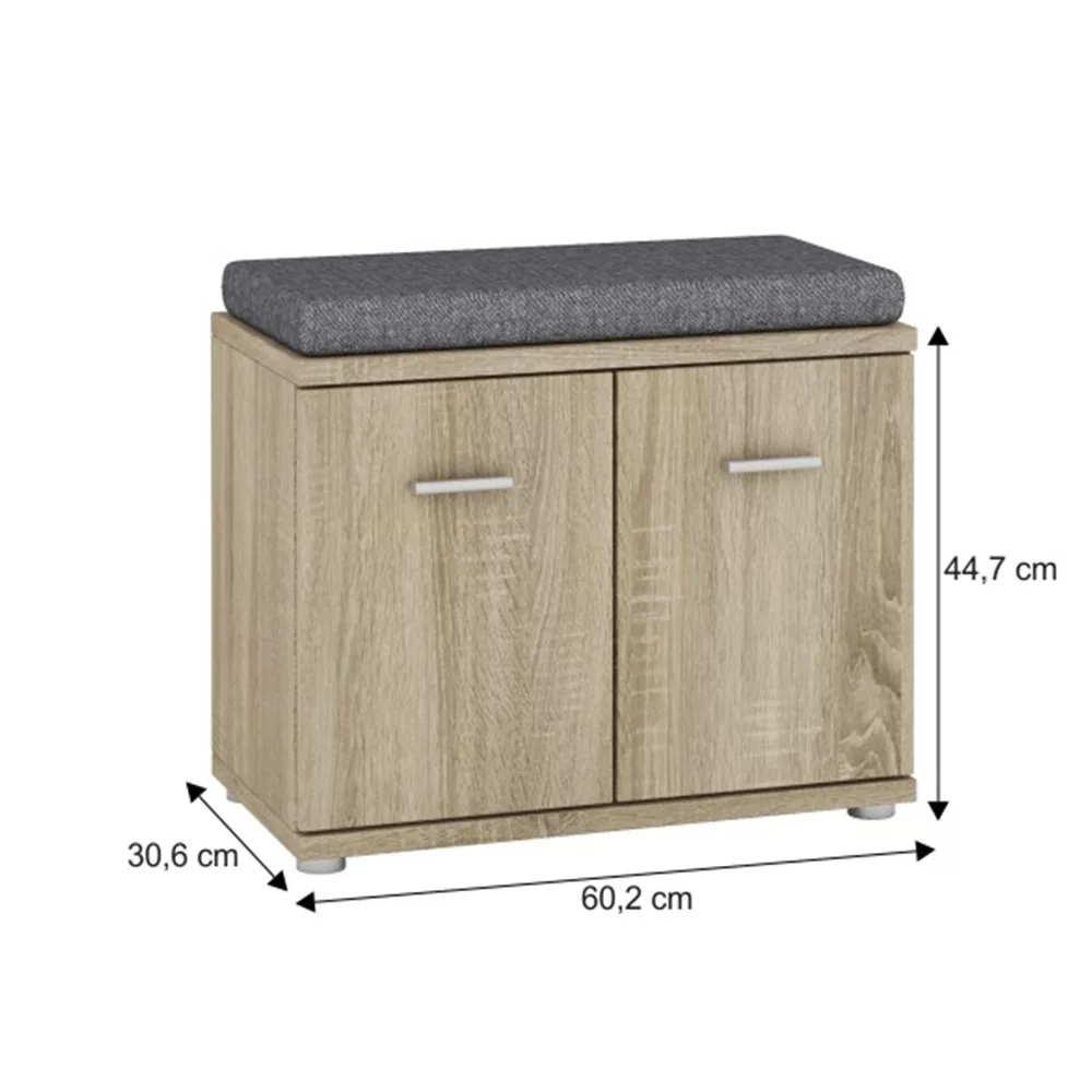 Komód párna nélkül, MARIO NEW F Anyaga: laminált DTD Színe: sonoma tölgy Méretek (SzéxMéxMa): 60,2x30,6x44,7 cm Egy polc Komód teherbírása: 90 kg Polcok teherbírása: 5 kg Párna nélkül szállítva Minőségi szlovák termék Lapraszerelten szállítva
