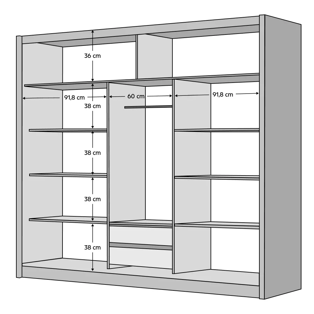 Méretek (SzéxMéxMa): 250x60x215 cm