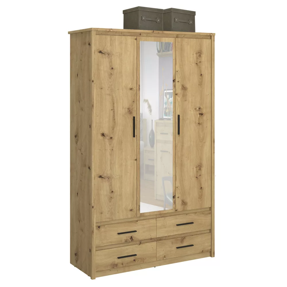 Szekrény tükörrel 3D4S, artisan tölgy, AIRON