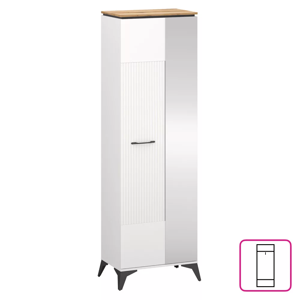 Szekrény tükörrel, fehér/evoke tölgy, VELIS 1D/40