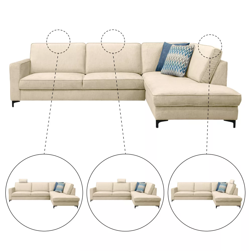 Széthúzható ülőgarnitúra, krémszínű, jobbos, ERMON ROH