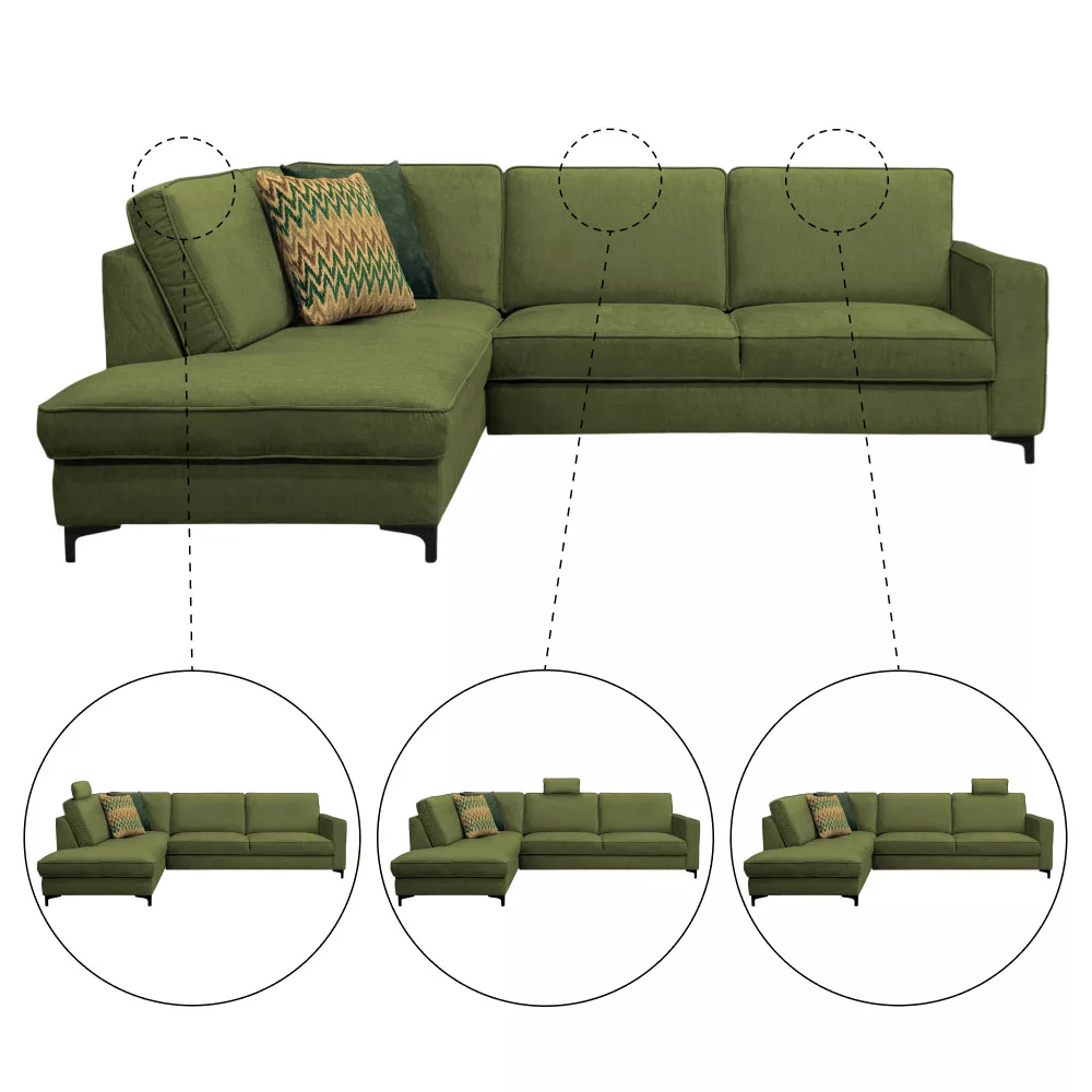 Széthúzható ülőgarnitúra, olíva zöld, balos, ERMON ROH