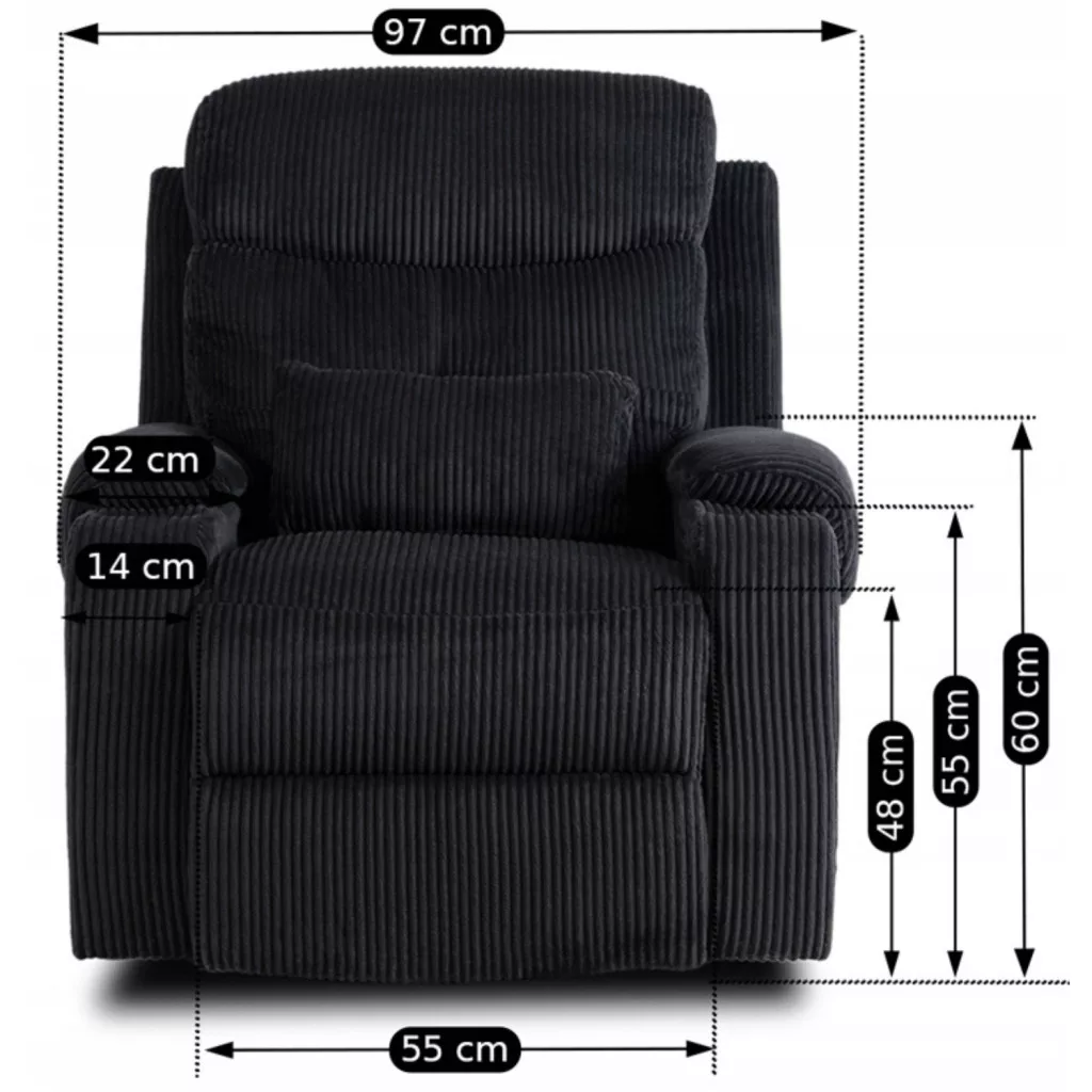 TORRES fekete kordbársony dönthető nyugágy. Nem kell egy sztárokkal teletűzdelt szállodában megszállnod ahhoz, hogy különlegesnek érezd magad. Néha elég egy megfelelő szék – egy olyan, amely valóban törődik a kényelmeddel. A Torres pontosan az: lehetővé teszi, hogy ellazulj, kényelmesen ülj, és amikor csak kedved tartja, hátradőlj, és hagyd, hogy a gondolataid elkalandozzanak a mindennapi életből. Három dönthető pozíció – válaszd ki a tökéleteset. A Torres alkalmazkodik hozzád. Ülni, kinyújtóztatni a lábaidat, vagy lefeküdni szeretnél? Ez a szék választási lehetőséget kínál: Ülő pozíció – nagyszerű kávézáshoz, beszélgetéshez, gyors telefonhíváshoz. Fekvő pozíció – ideális egy könyvhöz, filmhez vagy egy rövid szunyókáláshoz.