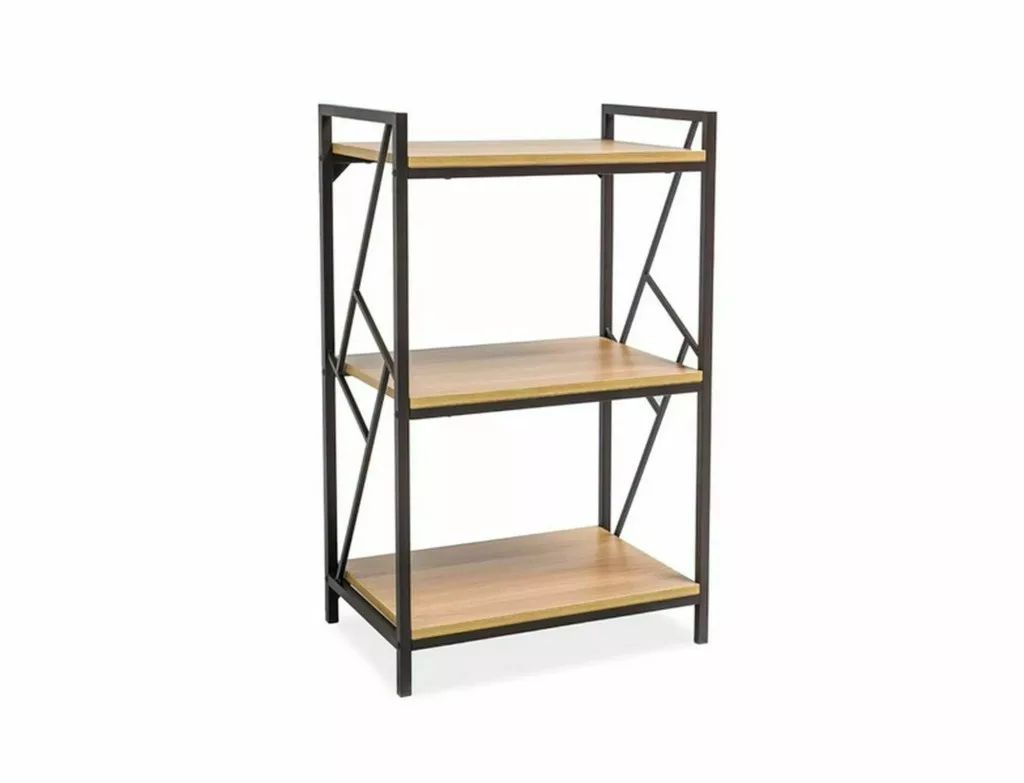 Bookcase Tablo R3 modern bútor, amely tökéletes kiegészítője lehet, legyen szó nappaliról vagy hálószobáról. Az MDF anyagból készült, elegáns tölgy színű polcok és a sötétbarna fémkeret harmonikus összhangot teremt, így stílusosan tudja tárolni kedvenc könyveit vagy dekorációs elemeit. Fedezze fel a praktikusságot és a modern dizájnt ezzel a sokoldalú bútorral!