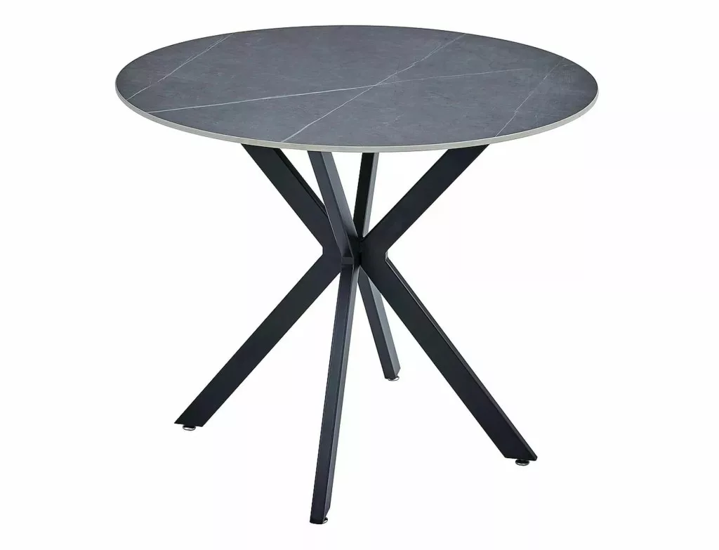 Asztallap: kerámia, márványhatású, keret: fém, színek: matt szürke / matt fekete.